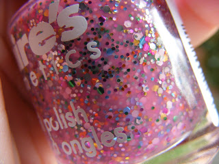 I don't know how many different sizes of glitter are in this polish but I think it is a lot! And there are a lot of colors too. I'm not using this word lightly; jam-packed!